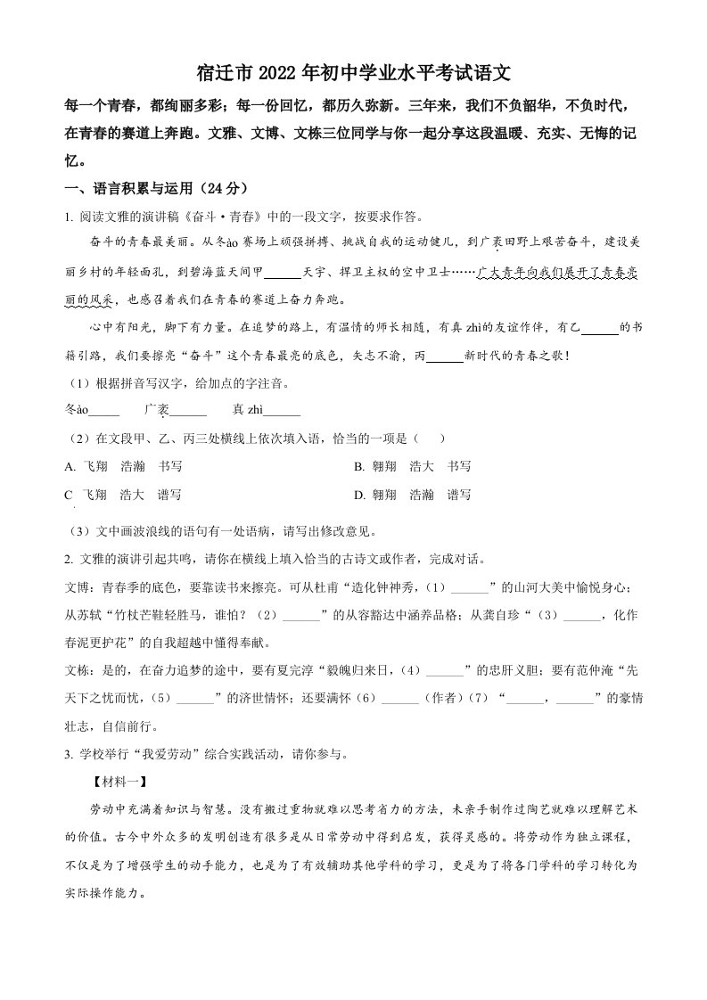 当前位置: 首页初中资源中考真题正文 2022年江苏省宿迁市中考语文真题(空白卷)_共10页 中考真题 2 周前 0 0 5 以上为部分内容预览,如需源文档请登录您的会员账号进行下载! 声明:本站所有文章,如无特殊说明或标注,均为本站原创发布。任何个人或组织,在未征得本站同意时,禁止复制、盗用、采集、发布本站内容到任何网站、书籍等各类媒体平台。如若本站内容侵犯了原著者的合法权益,可联系我们进行处理。 尚学资源永久会员 打赏 收藏 海报 链接