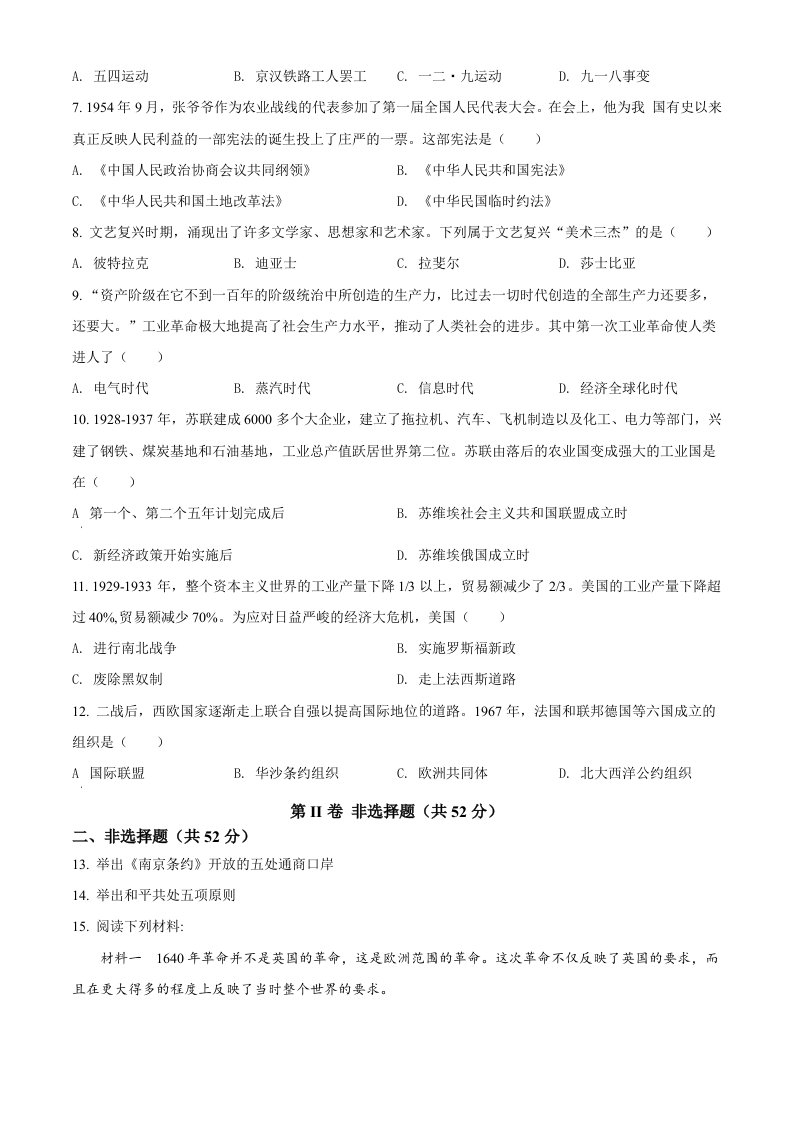 2022年四川省凉山州中考历史真题(空白卷)_共4页