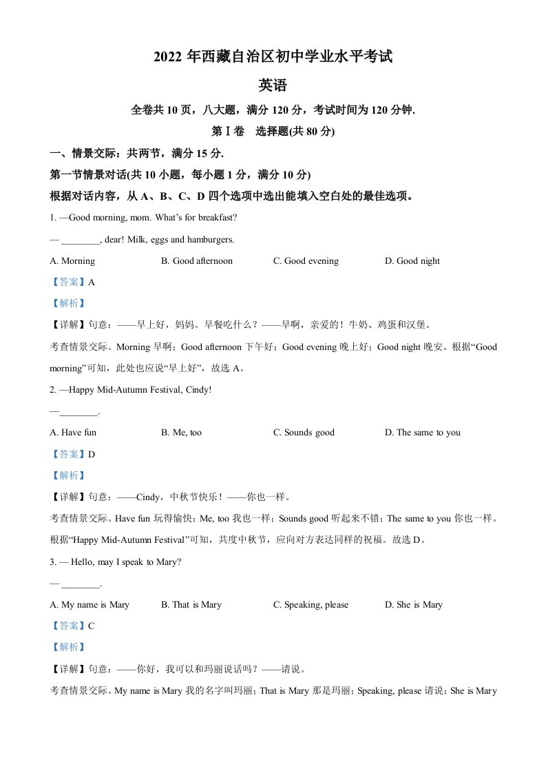 当前位置: 首页初中资源中考真题正文 2022年西藏中考英语真题(含答案)_共22页 中考真题 2 周前 0 0 5 以上为部分内容预览,如需源文档请登录您的会员账号进行下载! 声明:本站所有文章,如无特殊说明或标注,均为本站原创发布。任何个人或组织,在未征得本站同意时,禁止复制、盗用、采集、发布本站内容到任何网站、书籍等各类媒体平台。如若本站内容侵犯了原著者的合法权益,可联系我们进行处理。 尚学资源永久会员 打赏 收藏 海报 链接