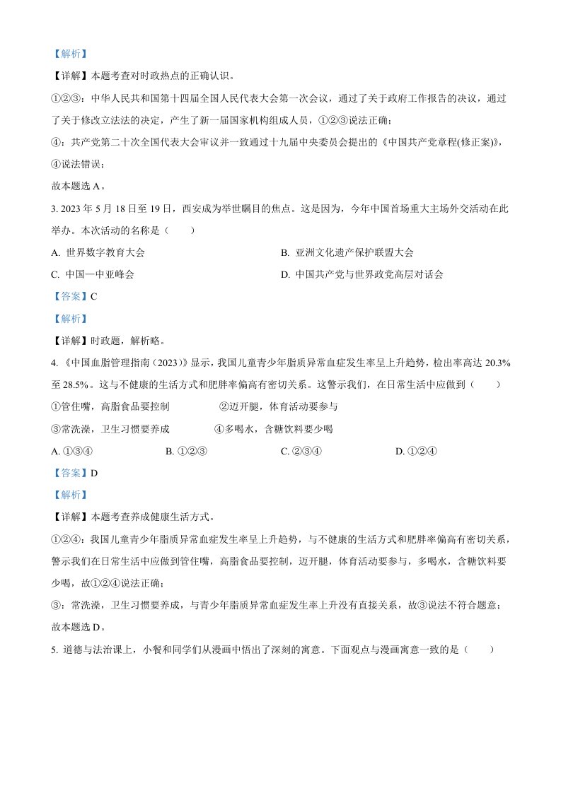 2023年陕西省中考道德与法治真题(A卷)(含答案)_共16页
