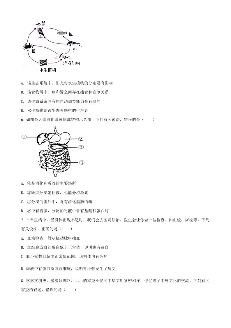 当前位置: 首页初中资源中考真题正文 湖北省鄂州市2021年中考生物试题(空白卷)_共5页 中考真题 2 周前 0 0 5 以上为部分内容预览,如需源文档请登录您的会员账号进行下载! 声明:本站所有文章,如无特殊说明或标注,均为本站原创发布。任何个人或组织,在未征得本站同意时,禁止复制、盗用、采集、发布本站内容到任何网站、书籍等各类媒体平台。如若本站内容侵犯了原著者的合法权益,可联系我们进行处理。 尚学资源永久会员 打赏 收藏 海报 链接