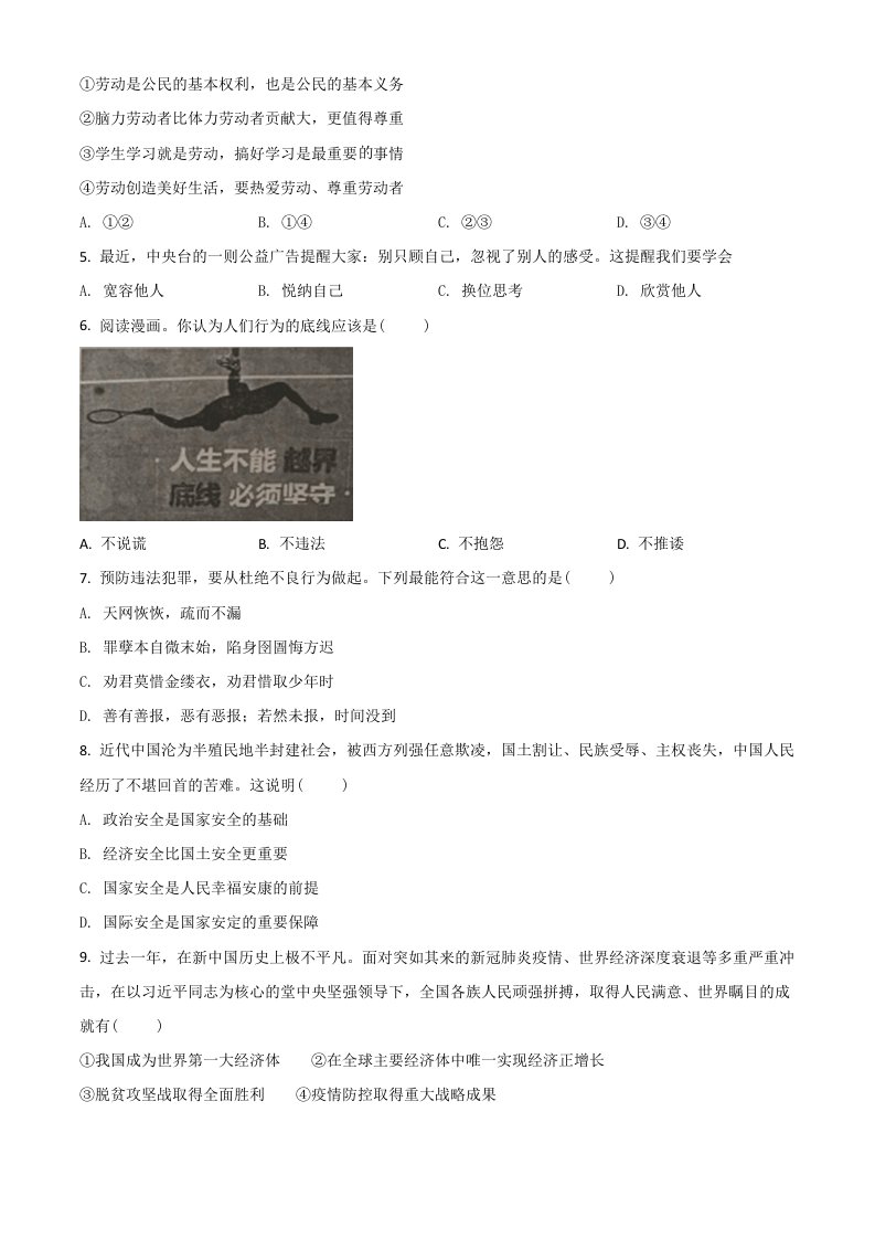 当前位置: 首页初中资源中考真题正文 江苏省无锡市2021年中考道德与法治试题(空白卷)_共7页 中考真题 1 周前 0 0 5 以上为部分内容预览,如需源文档请登录您的会员账号进行下载! 声明:本站所有文章,如无特殊说明或标注,均为本站原创发布。任何个人或组织,在未征得本站同意时,禁止复制、盗用、采集、发布本站内容到任何网站、书籍等各类媒体平台。如若本站内容侵犯了原著者的合法权益,可联系我们进行处理。 尚学资源永久会员 打赏 收藏 海报 链接