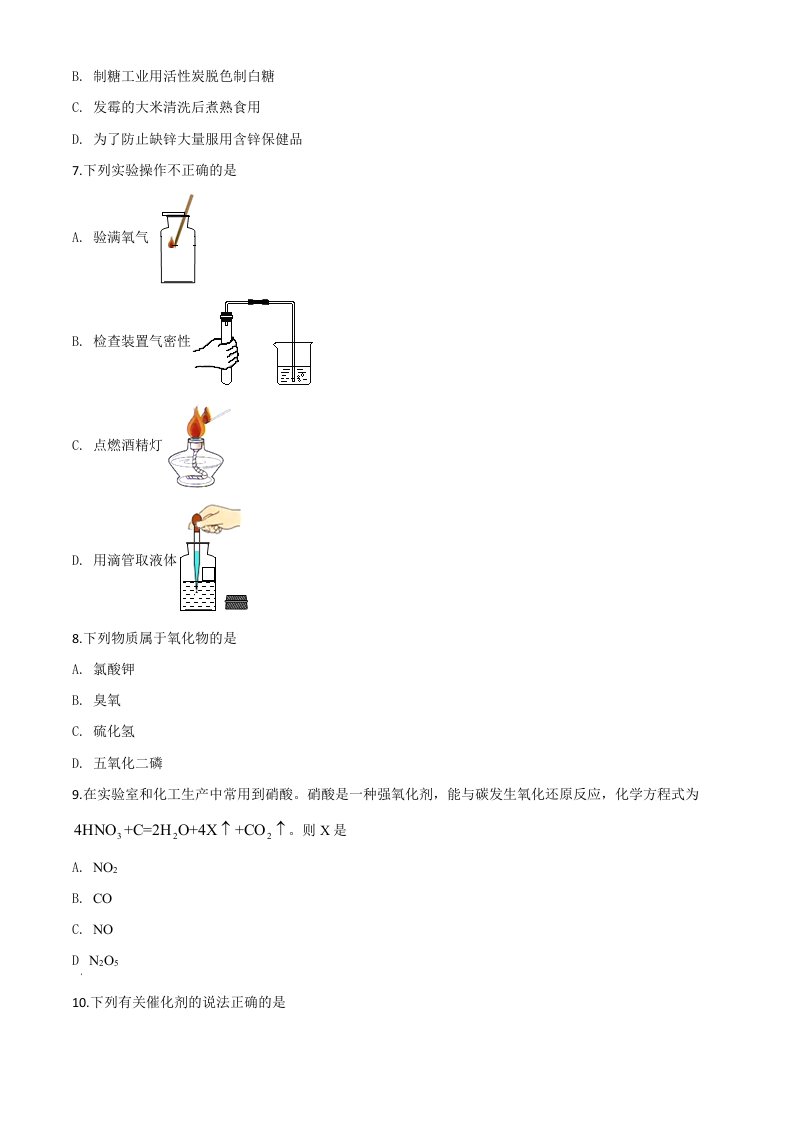 辽宁省抚顺市、铁岭市2020年中考化学试题(空白卷)_共9页