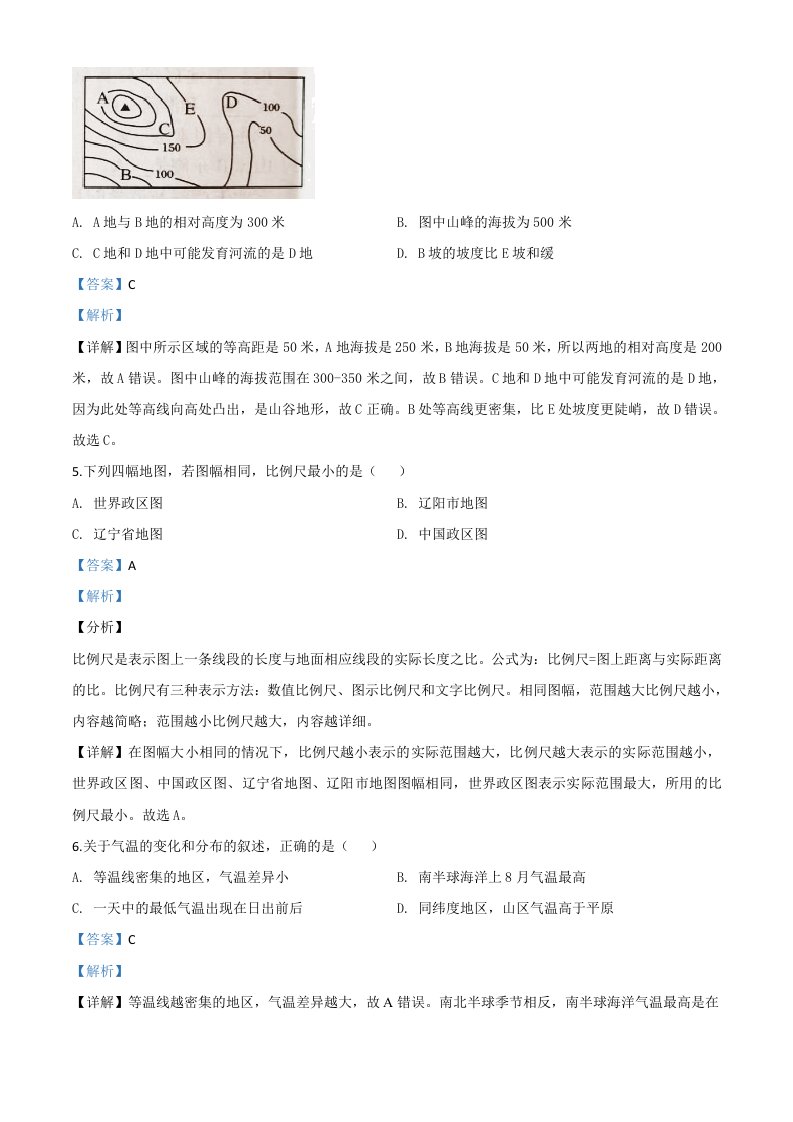 辽宁省辽阳市2020年中考地理试题(含答案)_共13页