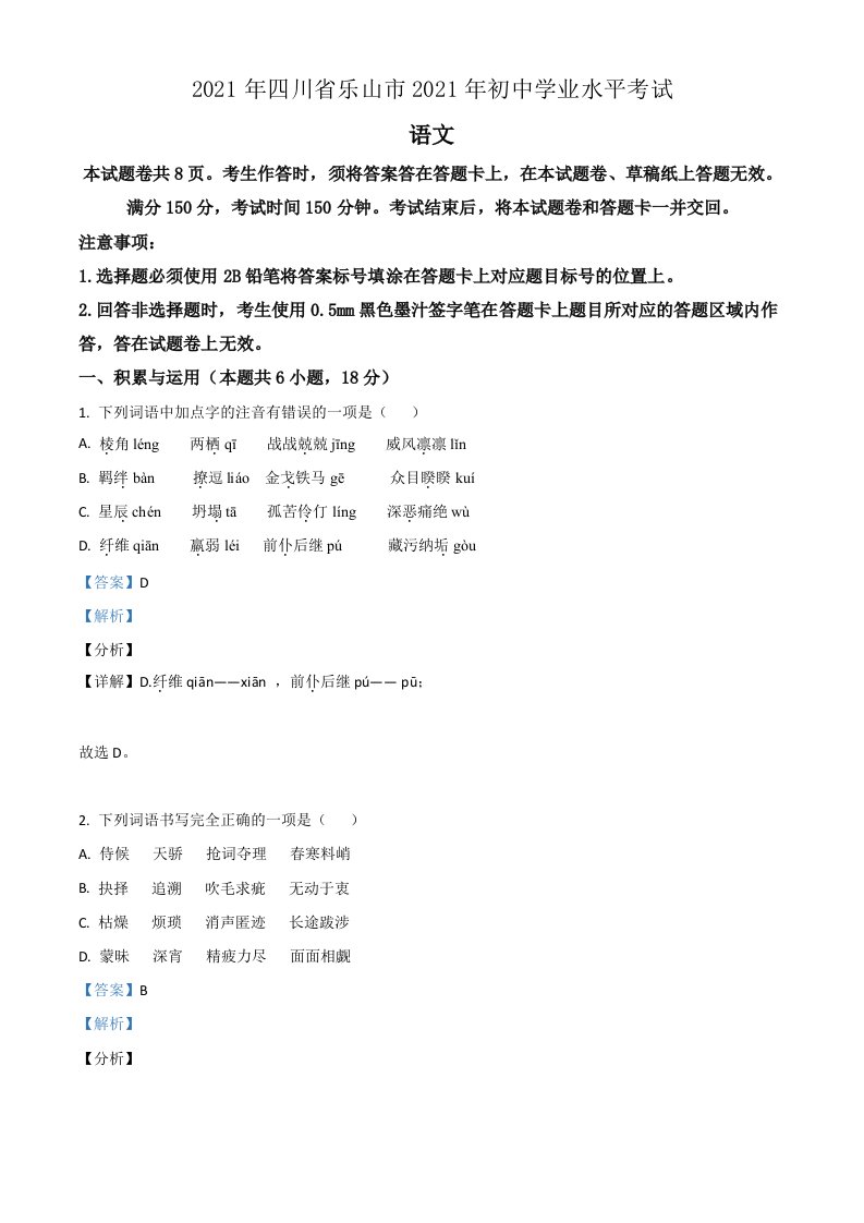 当前位置: 首页初中资源中考真题正文 四川省乐山市2021年中考语文试题(含答案)_共20页 中考真题 2 周前 0 0 10 以上为部分内容预览,如需源文档请登录您的会员账号进行下载! 声明:本站所有文章,如无特殊说明或标注,均为本站原创发布。任何个人或组织,在未征得本站同意时,禁止复制、盗用、采集、发布本站内容到任何网站、书籍等各类媒体平台。如若本站内容侵犯了原著者的合法权益,可联系我们进行处理。 尚学资源永久会员 打赏 收藏 海报 链接