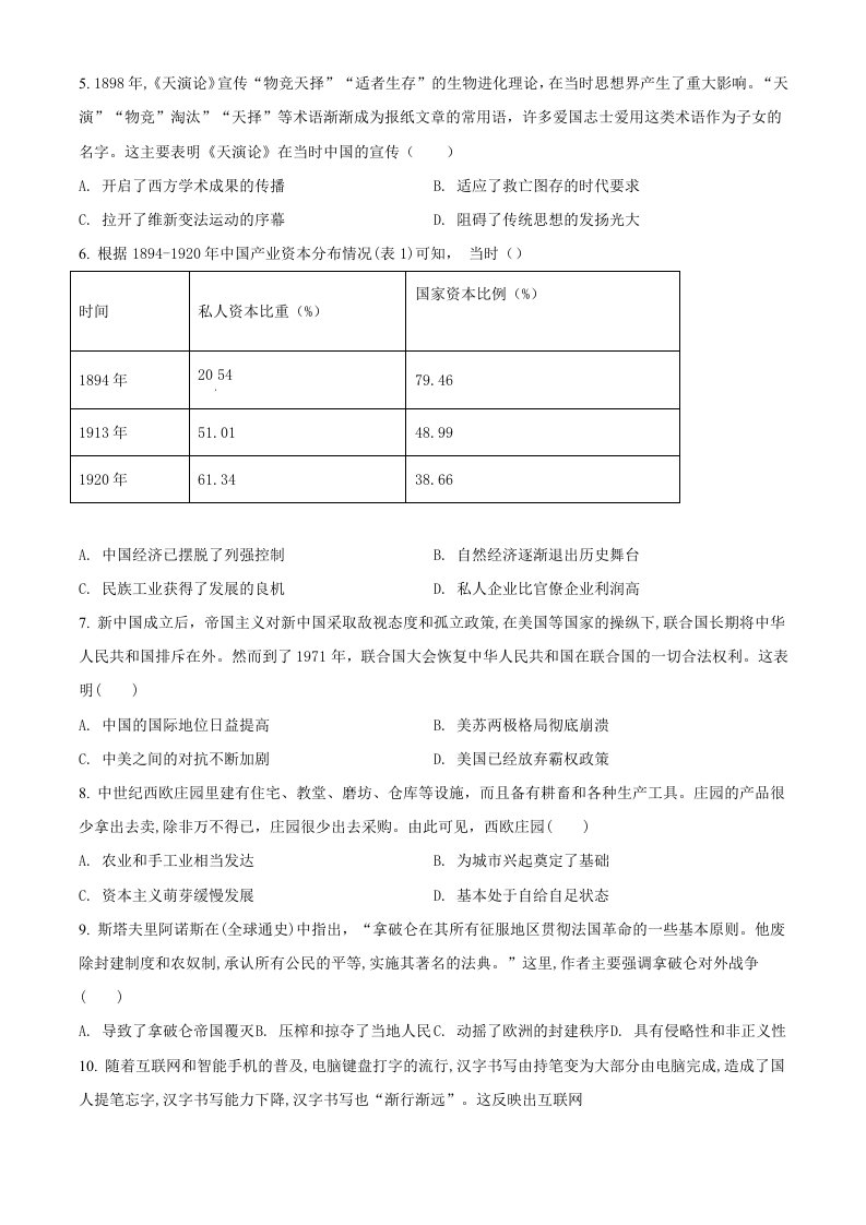 2022年湖北省黄冈市、孝感市、咸宁市三市中考历史真题(空白卷)_共5页