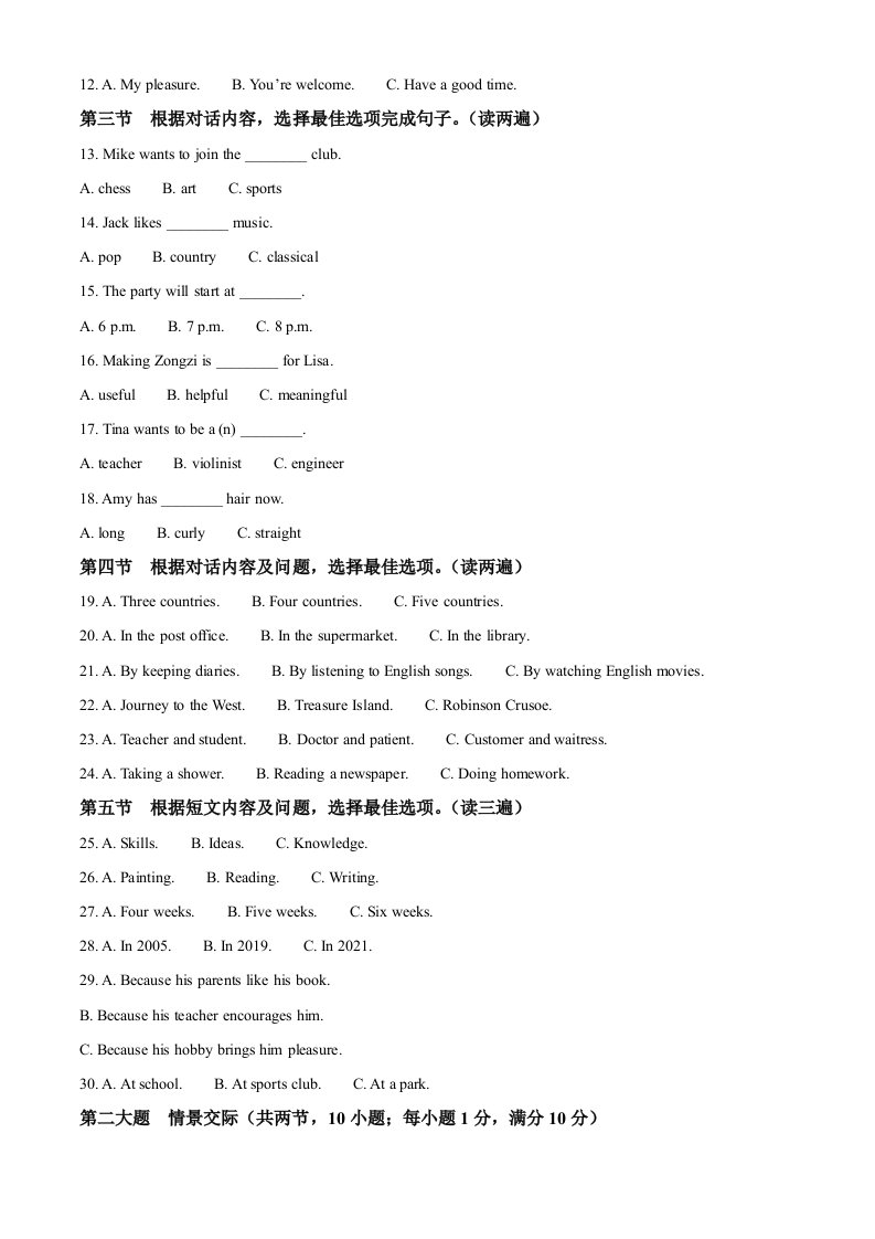 2022年贵州省六盘水市中考英语真题(空白卷)_共13页