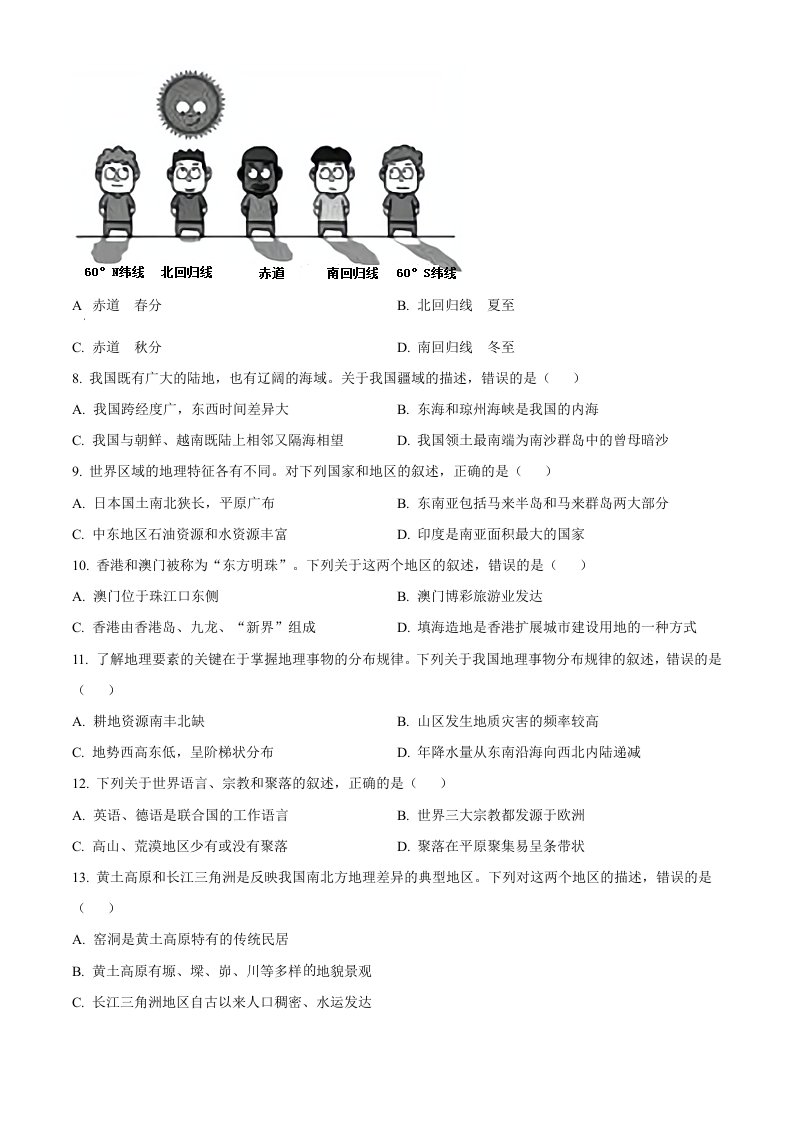 2022年湖北省襄阳市中考地理真题(空白卷)_共8页