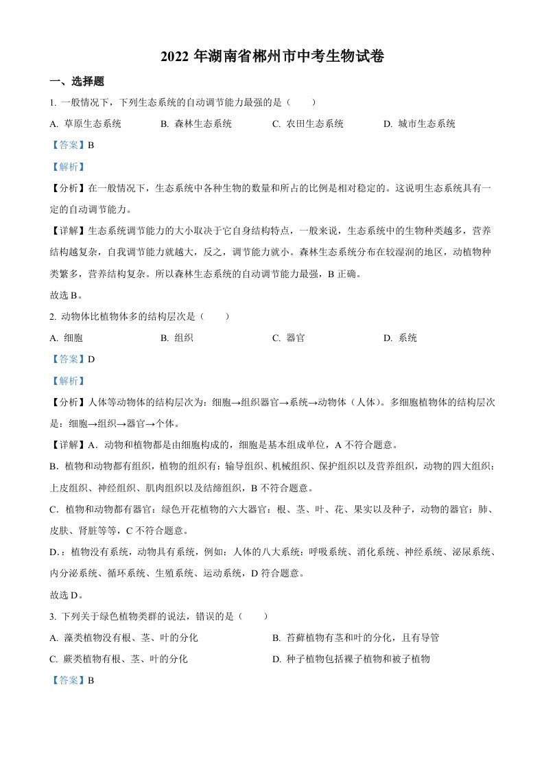 2022年湖南省郴州市中考生物真题(含答案)_共21页