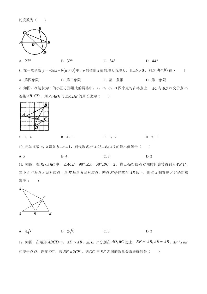 2022年内蒙古包头市中考数学真题(空白卷)_共8页