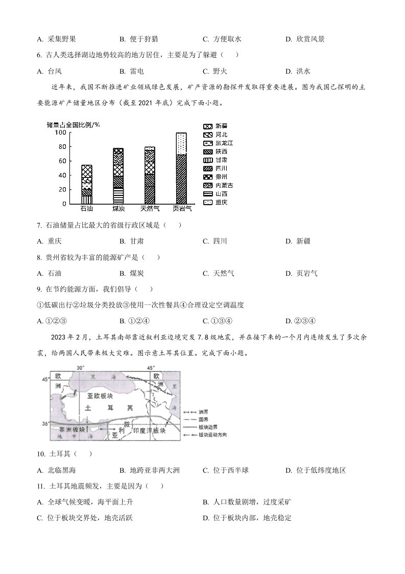 2023年贵州省贵阳市中考地理真题(空白卷)_共6页