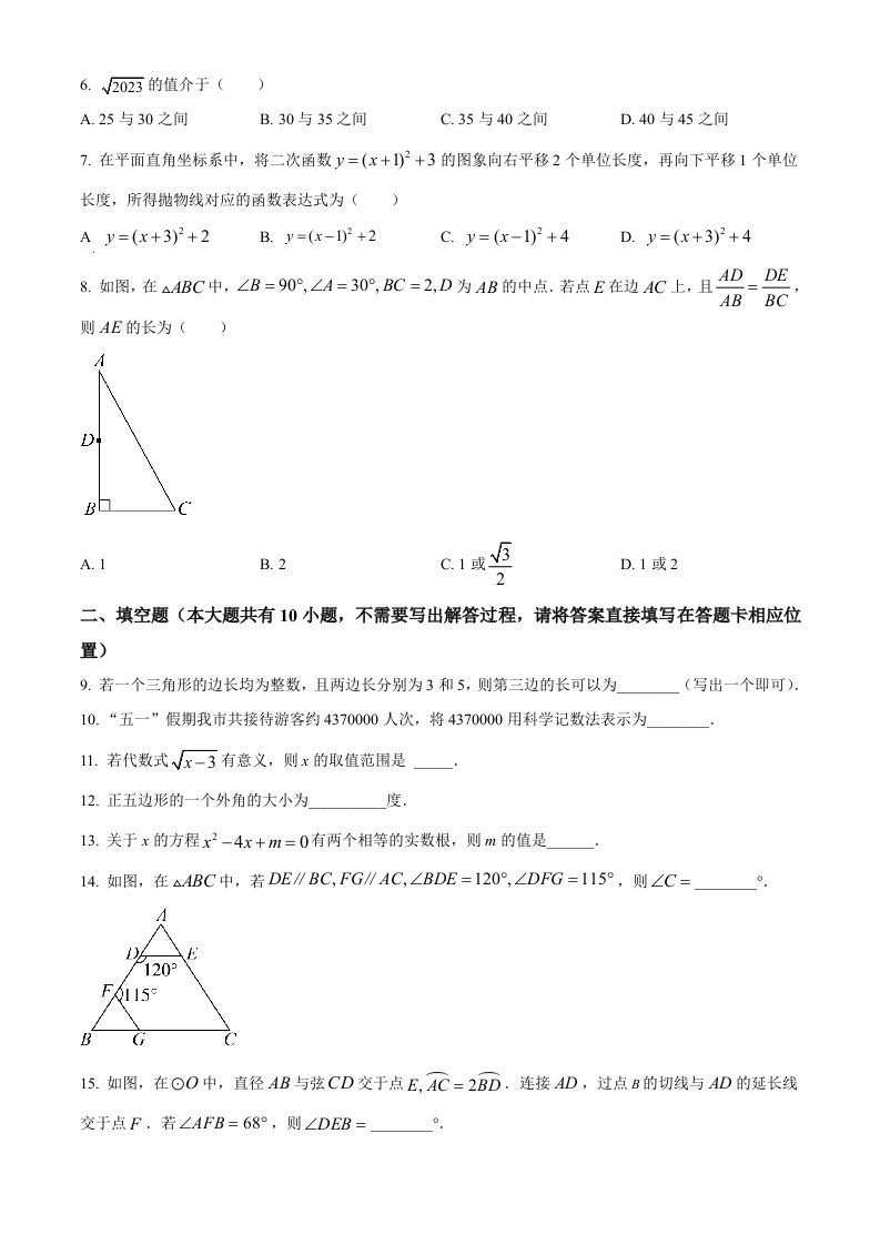2023年江苏省徐州市中考数学真题(空白卷)_共8页