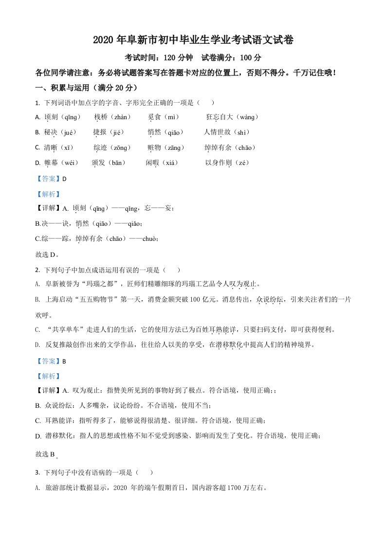当前位置: 首页初中资源中考真题正文 辽宁省阜新市2020年中考语文试题(含答案)_共16页 中考真题 2 周前 0 0 10 以上为部分内容预览,如需源文档请登录您的会员账号进行下载! 声明:本站所有文章,如无特殊说明或标注,均为本站原创发布。任何个人或组织,在未征得本站同意时,禁止复制、盗用、采集、发布本站内容到任何网站、书籍等各类媒体平台。如若本站内容侵犯了原著者的合法权益,可联系我们进行处理。 尚学资源永久会员 打赏 收藏 海报 链接