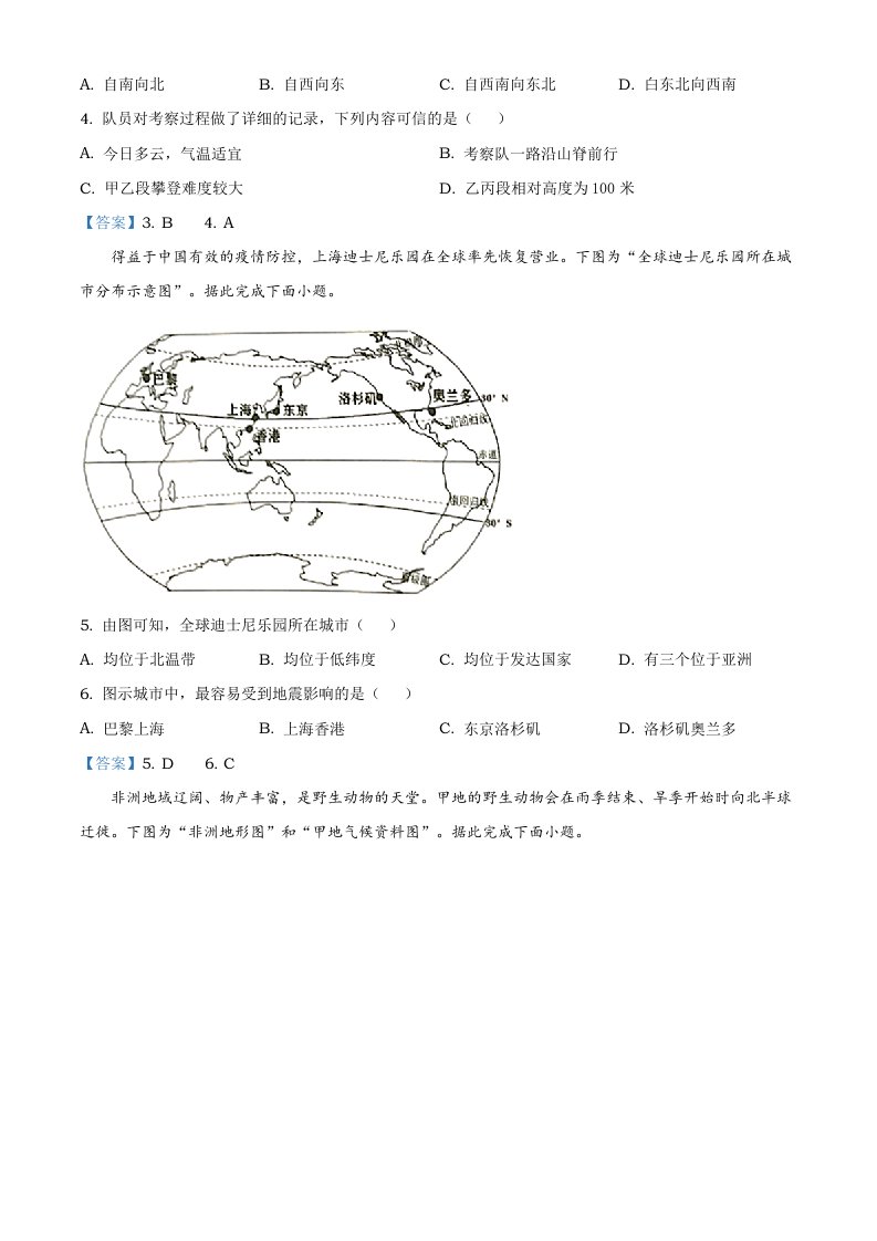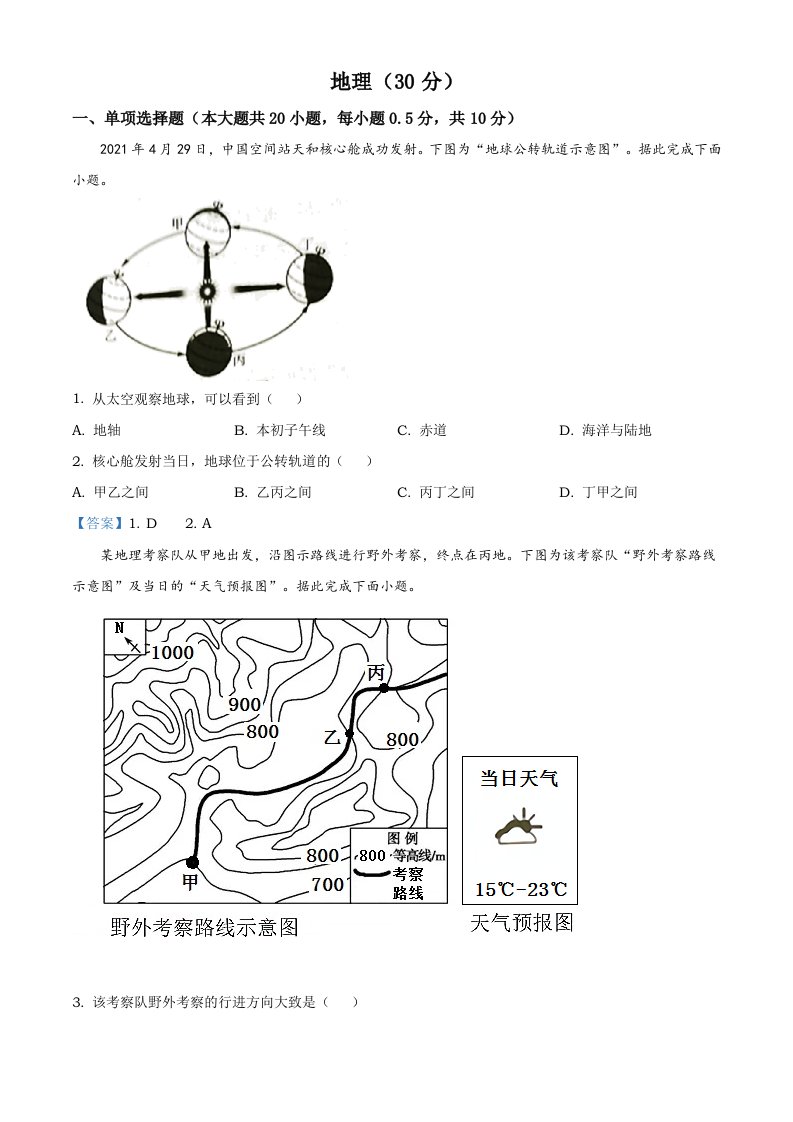 宁夏回族自治区2021年中考地理真题及答案_共10页