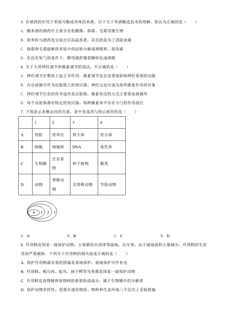 2022年湖北省恩施州中考生物真题(空白卷)_共7页