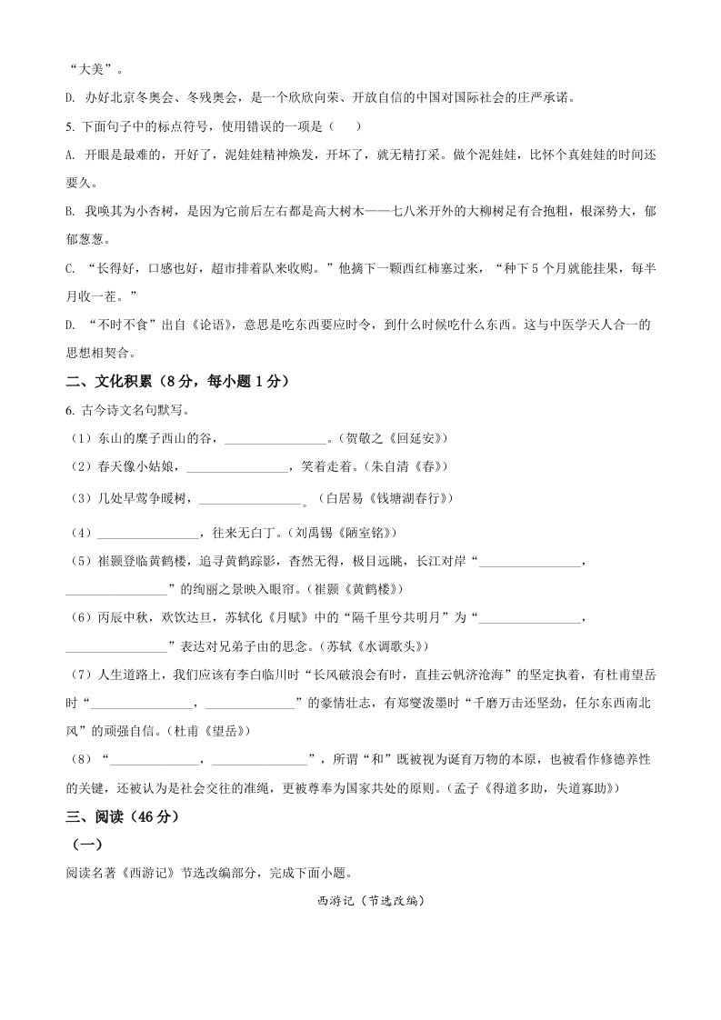 2022年湖北省恩施州中考语文真题(空白卷)_共9页