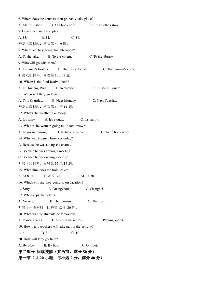 2022年湖南省湘潭市中考英语真题(含答案)_共18页
