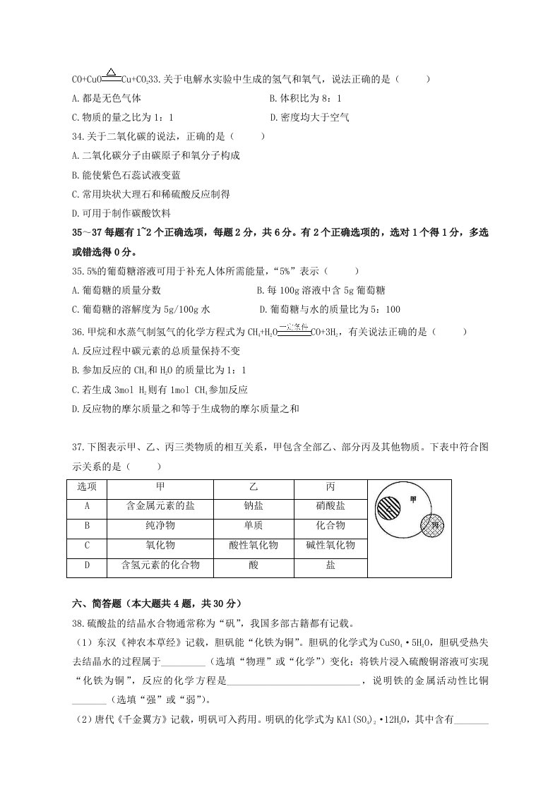 2022年上海市中考化学真题精品解析(word版)(空白卷)_共5页