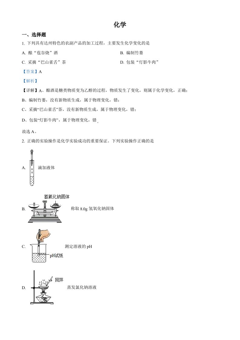当前位置: 首页初中资源中考真题正文 2022年四川省达州市中考化学真题(含答案)_共18页 中考真题 2 周前 0 0 10 以上为部分内容预览,如需源文档请登录您的会员账号进行下载! 声明:本站所有文章,如无特殊说明或标注,均为本站原创发布。任何个人或组织,在未征得本站同意时,禁止复制、盗用、采集、发布本站内容到任何网站、书籍等各类媒体平台。如若本站内容侵犯了原著者的合法权益,可联系我们进行处理。 尚学资源永久会员 打赏 收藏 海报 链接