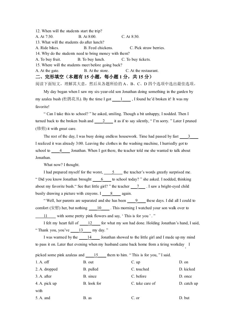 2022年浙江省湖州市中考英语真题(空白卷)_共9页