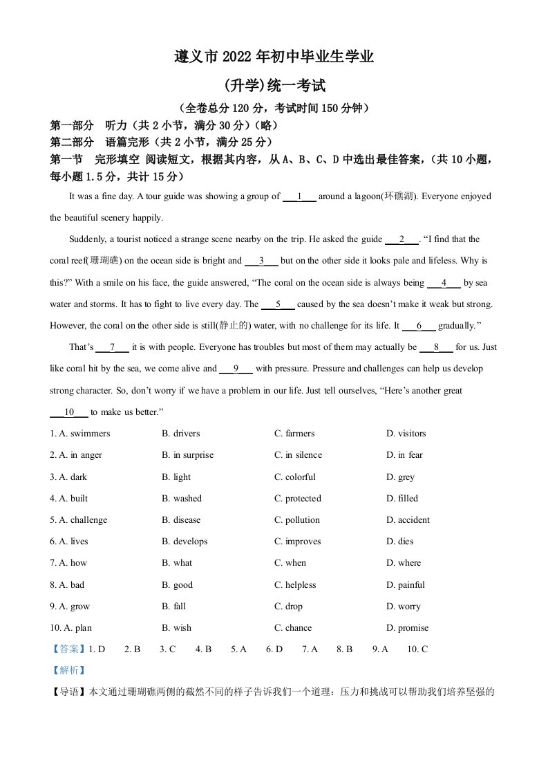 2022年贵州省遵义市中考英语真题(含答案)_共19页