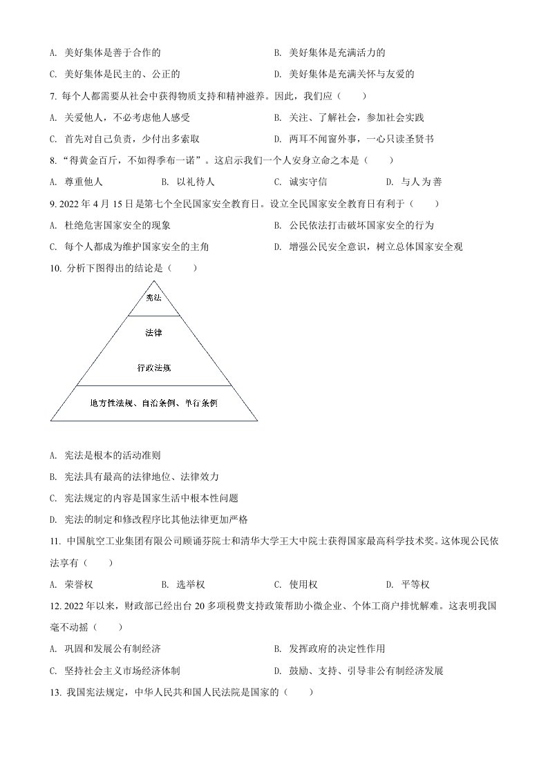 当前位置: 首页初中资源中考真题正文 2022年黑龙江省齐齐哈尔市中考道德与法治真题(空白卷)_共8页 中考真题 2 周前 0 0 15 以上为部分内容预览,如需源文档请登录您的会员账号进行下载! 声明:本站所有文章,如无特殊说明或标注,均为本站原创发布。任何个人或组织,在未征得本站同意时,禁止复制、盗用、采集、发布本站内容到任何网站、书籍等各类媒体平台。如若本站内容侵犯了原著者的合法权益,可联系我们进行处理。 尚学资源永久会员 打赏 收藏 海报 链接