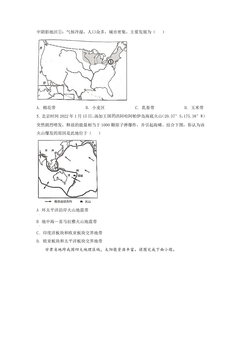2022年四川省遂宁市中考地理真题(空白卷)_共5页
