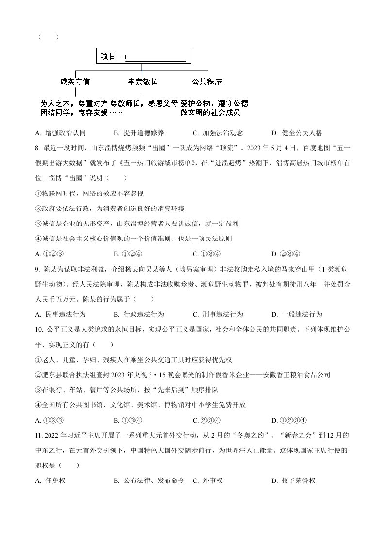 2023年湖南省郴州市中考道德与法治真题(空白卷)(1)_共7页