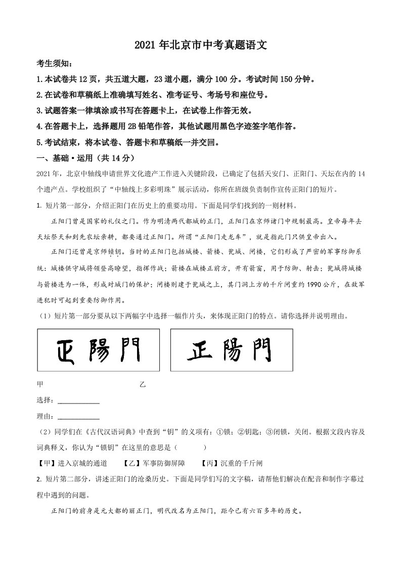 当前位置: 首页初中资源中考真题正文 北京市2021年中考语文试题(含答案)_共17页 中考真题 1 周前 0 0 10 以上为部分内容预览,如需源文档请登录您的会员账号进行下载! 声明:本站所有文章,如无特殊说明或标注,均为本站原创发布。任何个人或组织,在未征得本站同意时,禁止复制、盗用、采集、发布本站内容到任何网站、书籍等各类媒体平台。如若本站内容侵犯了原著者的合法权益,可联系我们进行处理。 尚学资源永久会员 打赏 收藏 海报 链接