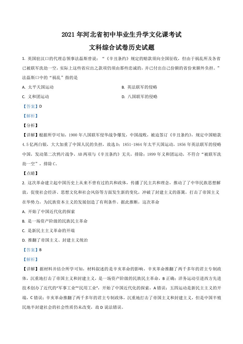 当前位置: 首页初中资源中考真题正文 河北省2021年中考历史试题(含答案)_共8页 中考真题 1 周前 0 0 5 以上为部分内容预览,如需源文档请登录您的会员账号进行下载! 声明:本站所有文章,如无特殊说明或标注,均为本站原创发布。任何个人或组织,在未征得本站同意时,禁止复制、盗用、采集、发布本站内容到任何网站、书籍等各类媒体平台。如若本站内容侵犯了原著者的合法权益,可联系我们进行处理。 尚学资源永久会员 打赏 收藏 海报 链接