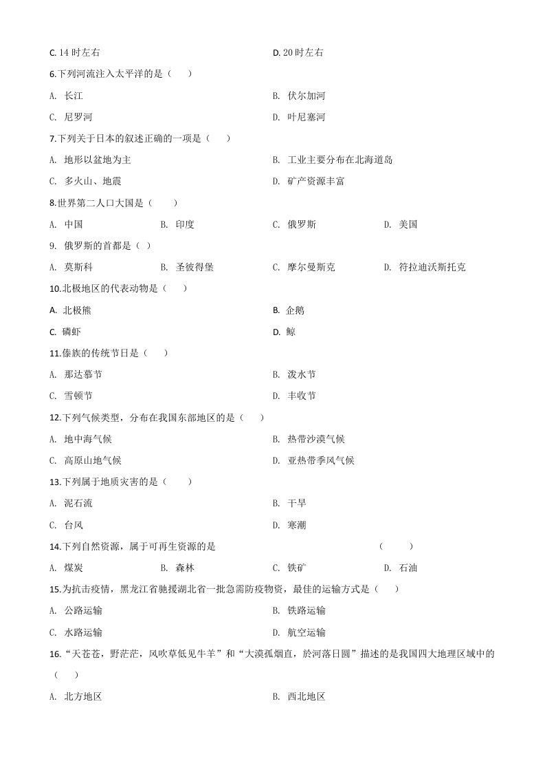 当前位置: 首页初中资源中考真题正文 黑龙江省齐齐哈尔市、黑河市、大兴安岭地区2020年中考地理试题(空白卷)_共8页 中考真题 1 周前 0 0 10 以上为部分内容预览,如需源文档请登录您的会员账号进行下载! 声明:本站所有文章,如无特殊说明或标注,均为本站原创发布。任何个人或组织,在未征得本站同意时,禁止复制、盗用、采集、发布本站内容到任何网站、书籍等各类媒体平台。如若本站内容侵犯了原著者的合法权益,可联系我们进行处理。 尚学资源永久会员 打赏 收藏 海报 链接