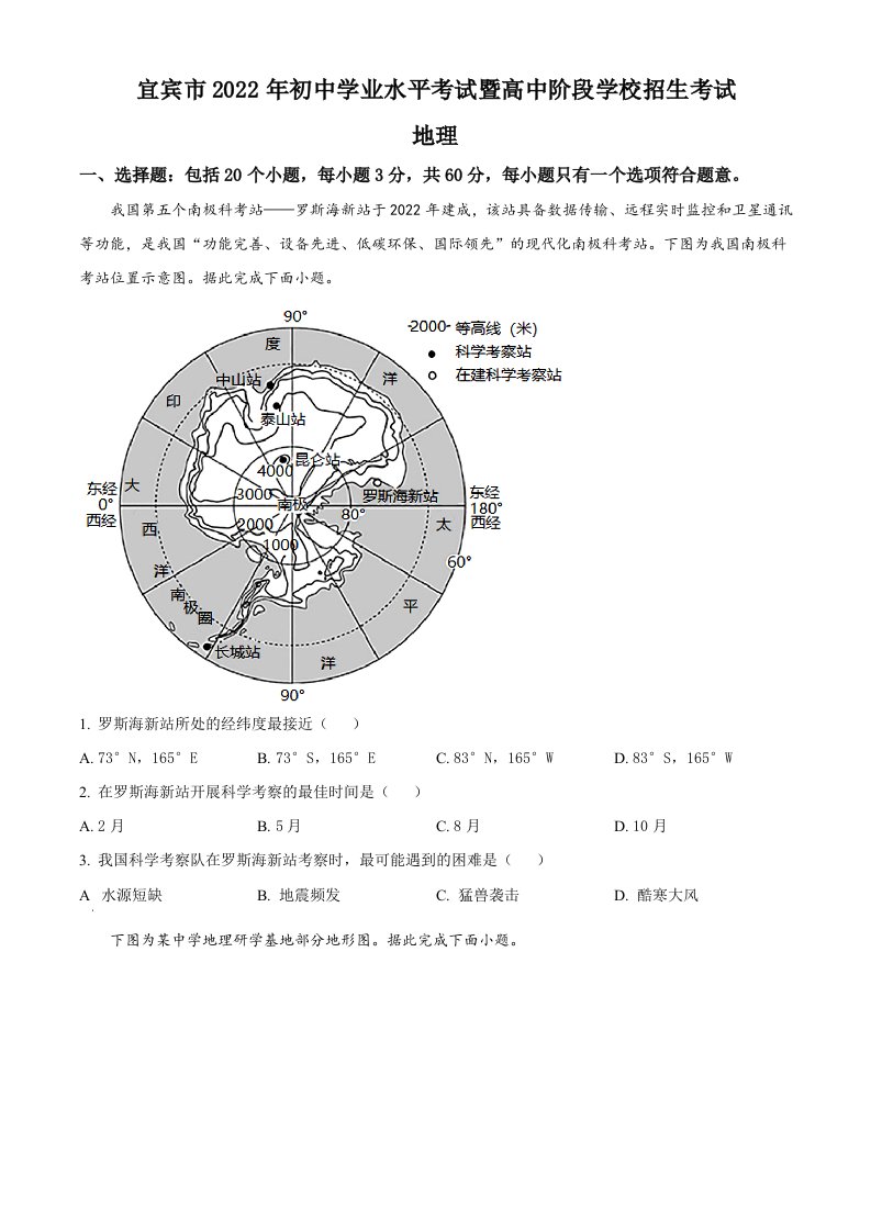2022年四川省宜宾市中考地理真题(空白卷)_共8页