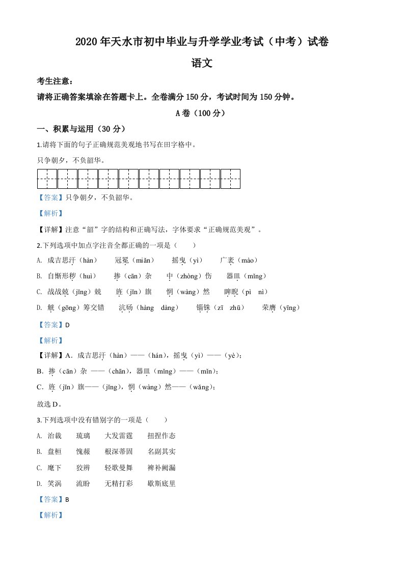 当前位置: 首页初中资源中考真题正文 甘肃省天水市2020年中考语文试题(含答案)_共22页 中考真题 1 周前 0 0 5 以上为部分内容预览,如需源文档请登录您的会员账号进行下载! 声明:本站所有文章,如无特殊说明或标注,均为本站原创发布。任何个人或组织,在未征得本站同意时,禁止复制、盗用、采集、发布本站内容到任何网站、书籍等各类媒体平台。如若本站内容侵犯了原著者的合法权益,可联系我们进行处理。 尚学资源永久会员 打赏 收藏 海报 链接