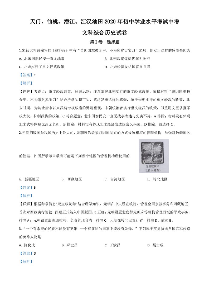 当前位置: 首页初中资源中考真题正文 湖北省天门、仙桃、潜江、江汉油田2020年中考历史试题(含答案)_共9页 中考真题 1 周前 0 0 5 以上为部分内容预览,如需源文档请登录您的会员账号进行下载! 声明:本站所有文章,如无特殊说明或标注,均为本站原创发布。任何个人或组织,在未征得本站同意时,禁止复制、盗用、采集、发布本站内容到任何网站、书籍等各类媒体平台。如若本站内容侵犯了原著者的合法权益,可联系我们进行处理。 尚学资源永久会员 打赏 收藏 海报 链接