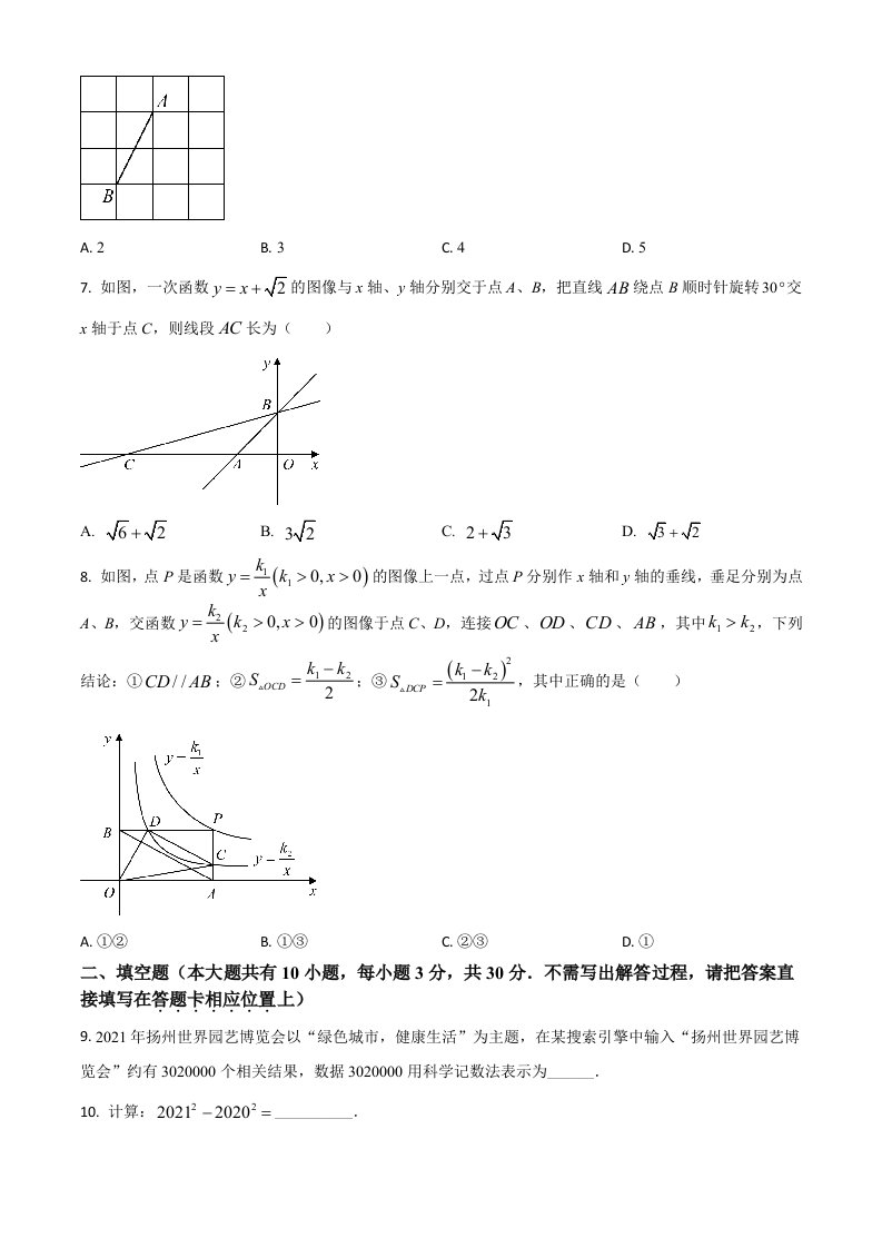 当前位置: 首页初中资源中考真题正文 江苏省扬州市2021年中考数学试题(空白卷)_共9页 中考真题 1 周前 0 0 10 以上为部分内容预览,如需源文档请登录您的会员账号进行下载! 声明:本站所有文章,如无特殊说明或标注,均为本站原创发布。任何个人或组织,在未征得本站同意时,禁止复制、盗用、采集、发布本站内容到任何网站、书籍等各类媒体平台。如若本站内容侵犯了原著者的合法权益,可联系我们进行处理。 尚学资源永久会员 打赏 收藏 海报 链接