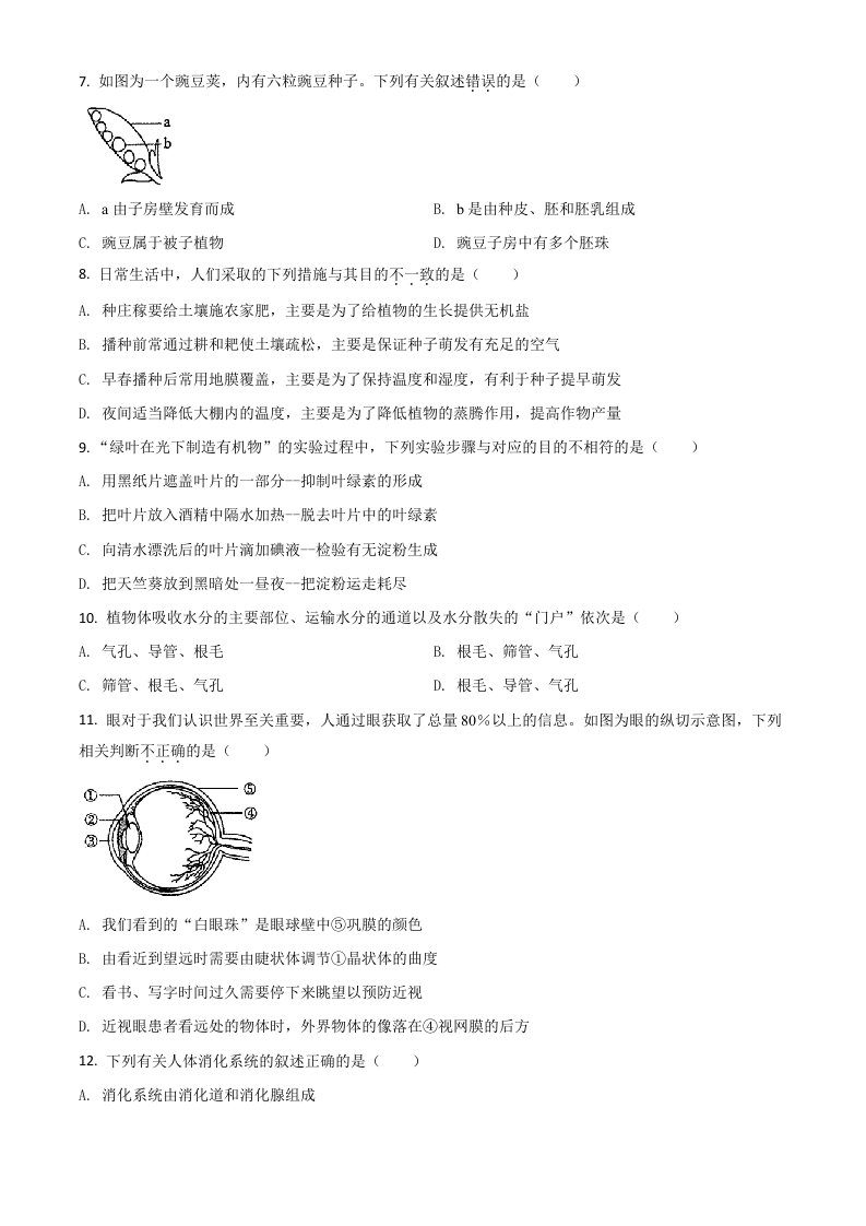 内蒙古赤峰市2020年中考生物试题(空白卷)_共10页
