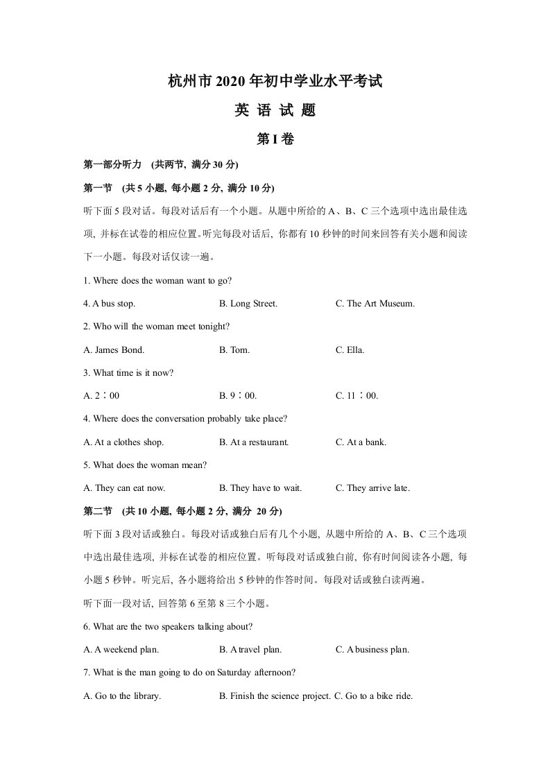 当前位置: 首页初中资源中考真题正文 浙江省杭州市2020年中考英语试题(含答案不含听力部分解析)_共16页 中考真题 1 周前 0 0 10 以上为部分内容预览,如需源文档请登录您的会员账号进行下载! 声明:本站所有文章,如无特殊说明或标注,均为本站原创发布。任何个人或组织,在未征得本站同意时,禁止复制、盗用、采集、发布本站内容到任何网站、书籍等各类媒体平台。如若本站内容侵犯了原著者的合法权益,可联系我们进行处理。 尚学资源永久会员 打赏 收藏 海报 链接