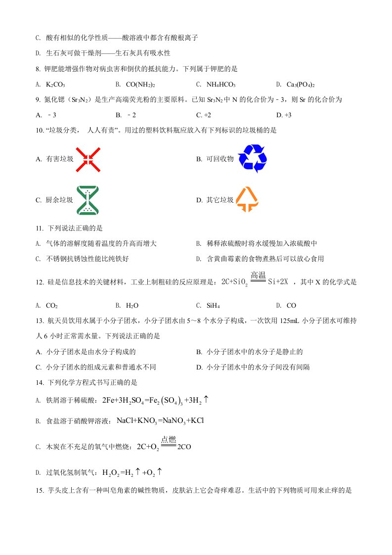 2022年广西百色市中考化学真题(空白卷)_共9页