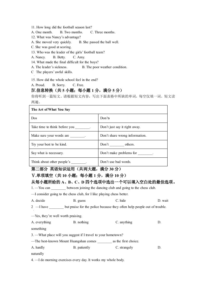 当前位置: 首页初中资源中考真题正文 2022年安徽省中考英语真题(空白卷)_共10页 中考真题 1 周前 0 0 5 以上为部分内容预览,如需源文档请登录您的会员账号进行下载! 声明:本站所有文章,如无特殊说明或标注,均为本站原创发布。任何个人或组织,在未征得本站同意时,禁止复制、盗用、采集、发布本站内容到任何网站、书籍等各类媒体平台。如若本站内容侵犯了原著者的合法权益,可联系我们进行处理。 尚学资源永久会员 打赏 收藏 海报 链接