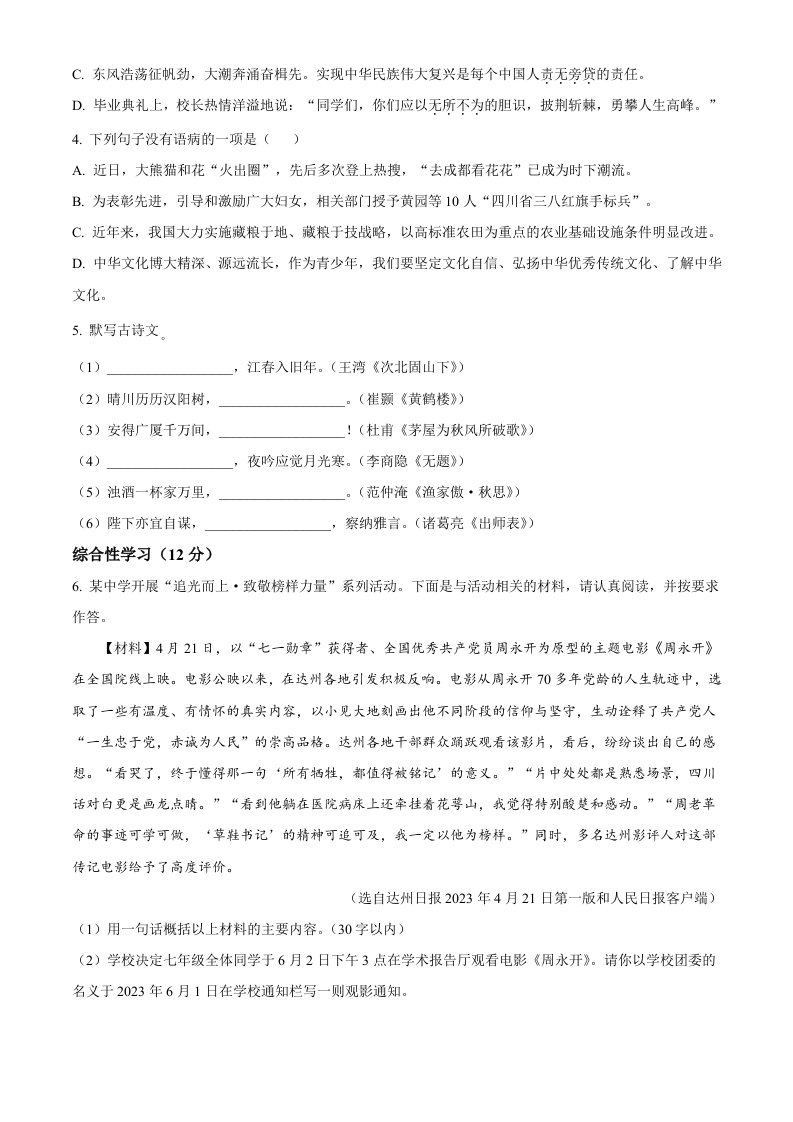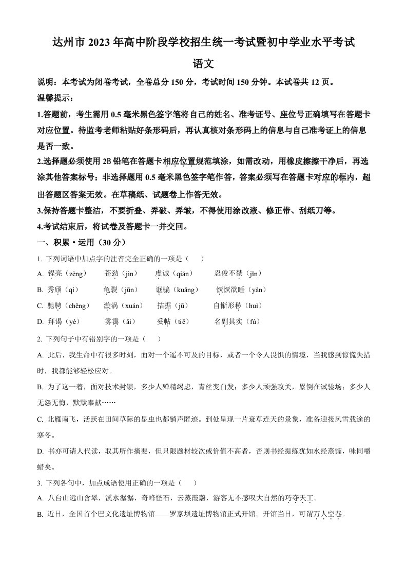 当前位置: 首页初中资源中考真题正文 2023年四川省达州市中考语文真题(空白卷)_共11页 中考真题 1 周前 0 0 10 以上为部分内容预览,如需源文档请登录您的会员账号进行下载! 声明:本站所有文章,如无特殊说明或标注,均为本站原创发布。任何个人或组织,在未征得本站同意时,禁止复制、盗用、采集、发布本站内容到任何网站、书籍等各类媒体平台。如若本站内容侵犯了原著者的合法权益,可联系我们进行处理。 尚学资源永久会员 打赏 收藏 海报 链接
