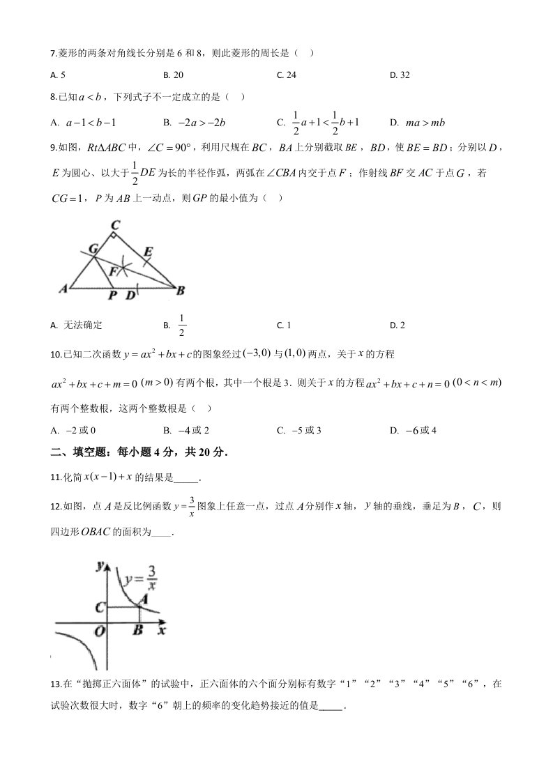 当前位置: 首页初中资源中考真题正文 贵州省贵阳市2020中考试卷数学试题(空白卷)_共8页 中考真题 1 周前 0 0 5 以上为部分内容预览,如需源文档请登录您的会员账号进行下载! 声明:本站所有文章,如无特殊说明或标注,均为本站原创发布。任何个人或组织,在未征得本站同意时,禁止复制、盗用、采集、发布本站内容到任何网站、书籍等各类媒体平台。如若本站内容侵犯了原著者的合法权益,可联系我们进行处理。 尚学资源永久会员 打赏 收藏 海报 链接