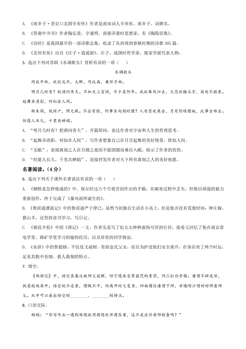 辽宁省本溪、铁岭、辽阳2021年中考语文试题(空白卷)_共11页