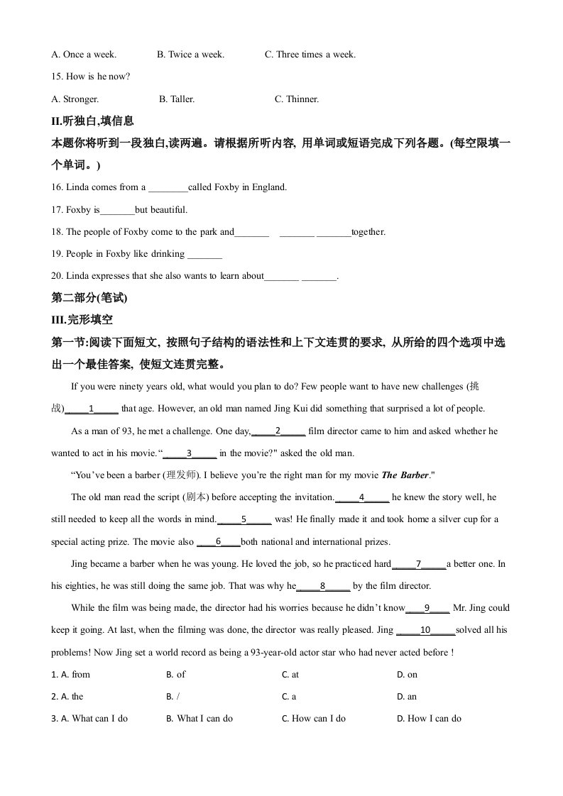 当前位置: 首页初中资源中考真题正文 陕西省2020年中考英语试题(空白卷)_共11页 中考真题 1 周前 0 0 10 以上为部分内容预览,如需源文档请登录您的会员账号进行下载! 声明:本站所有文章,如无特殊说明或标注,均为本站原创发布。任何个人或组织,在未征得本站同意时,禁止复制、盗用、采集、发布本站内容到任何网站、书籍等各类媒体平台。如若本站内容侵犯了原著者的合法权益,可联系我们进行处理。 尚学资源永久会员 打赏 收藏 海报 链接