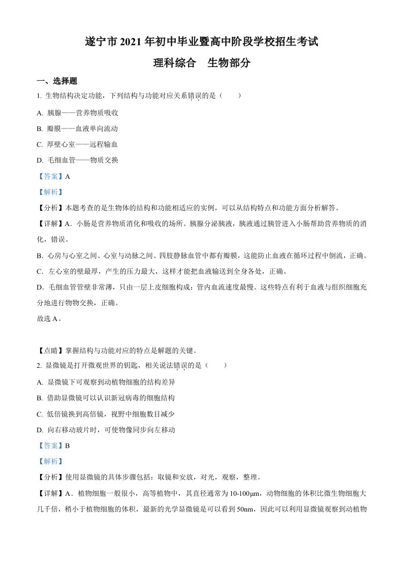 当前位置: 首页初中资源中考真题正文 四川省遂宁市2021年中考生物试题(含答案)_共12页 中考真题 1 周前 0 0 15 以上为部分内容预览,如需源文档请登录您的会员账号进行下载! 声明:本站所有文章,如无特殊说明或标注,均为本站原创发布。任何个人或组织,在未征得本站同意时,禁止复制、盗用、采集、发布本站内容到任何网站、书籍等各类媒体平台。如若本站内容侵犯了原著者的合法权益,可联系我们进行处理。 尚学资源永久会员 打赏 收藏 海报 链接
