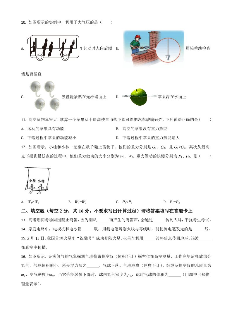广西桂林市2021年中考物理试题(空白卷)_共6页