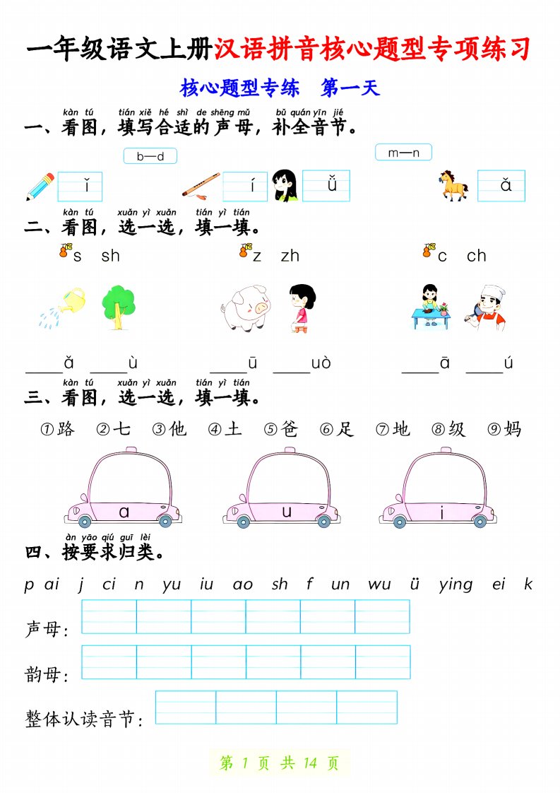 一上语文【拼音核心题专练14天】_共14页