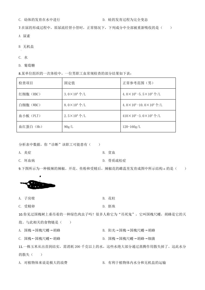 山西省晋中市2020年中考生物试题(空白卷)_共9页