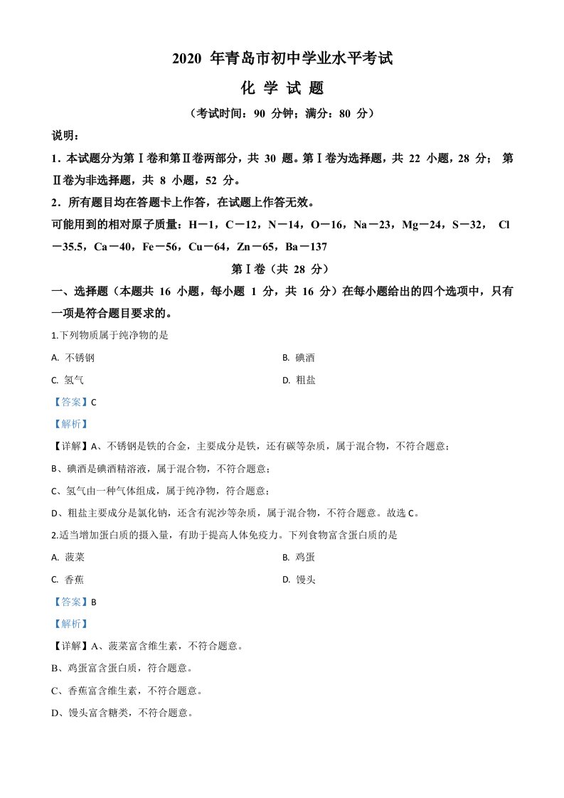 当前位置: 首页初中资源中考真题正文 山东省青岛市2020年中考化学试题(含答案)_共24页 中考真题 1 周前 0 0 15 以上为部分内容预览,如需源文档请登录您的会员账号进行下载! 声明:本站所有文章,如无特殊说明或标注,均为本站原创发布。任何个人或组织,在未征得本站同意时,禁止复制、盗用、采集、发布本站内容到任何网站、书籍等各类媒体平台。如若本站内容侵犯了原著者的合法权益,可联系我们进行处理。 尚学资源永久会员 打赏 收藏 海报 链接
