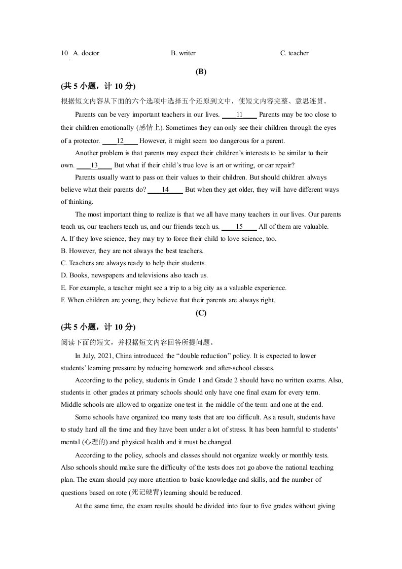 当前位置: 首页初中资源中考真题正文 2022年湖南省衡阳市中考英语真题(空白卷)_共9页 中考真题 1 周前 0 0 10 以上为部分内容预览,如需源文档请登录您的会员账号进行下载! 声明:本站所有文章,如无特殊说明或标注,均为本站原创发布。任何个人或组织,在未征得本站同意时,禁止复制、盗用、采集、发布本站内容到任何网站、书籍等各类媒体平台。如若本站内容侵犯了原著者的合法权益,可联系我们进行处理。 尚学资源永久会员 打赏 收藏 海报 链接