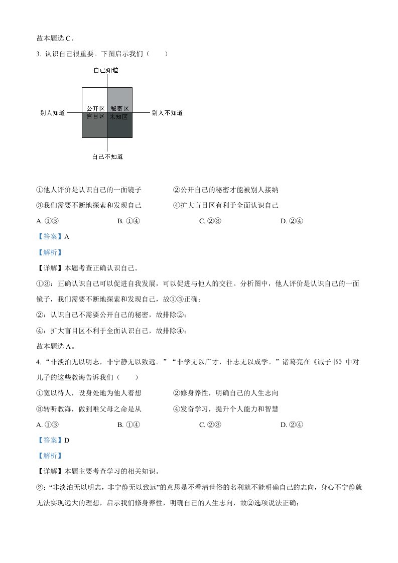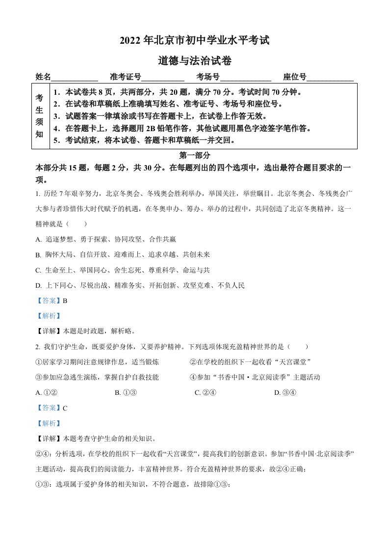 2022年北京市中考道德与法治真题(含答案)_共16页